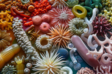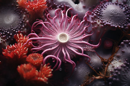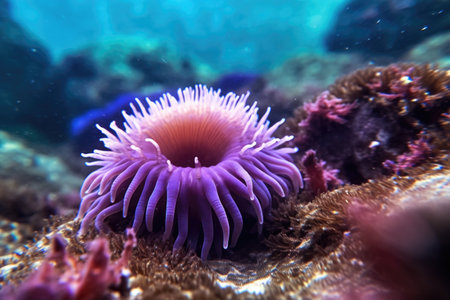 Wonderful aquatic life in ocean seabed. anemones. Coral reef design. Generative AI. Illustration for banner, poster, cover, brochure or presentation.