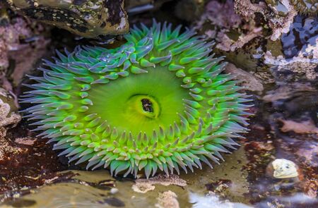 Giant green anemone under water in a Pacific Ocean tide pool at the Fitzgerald Marine Reserve in Northern California, Bay Area south of San Francisco