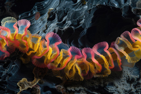 Vibrant hydrothermal vent worms thriving in the depths of the ocean