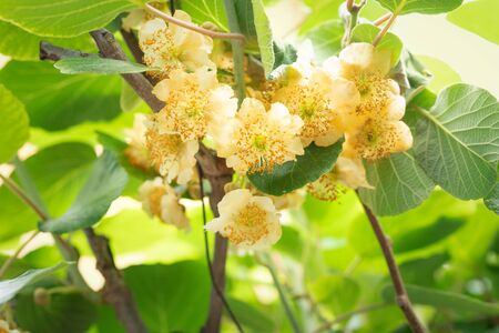 Kiwifruit cultivation. Actinidiaceae deciduous vine dioecious fruit tree. The flowering season is May and the harvesting time is from October to November.