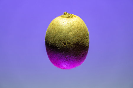 Floating kiwi with Purple bottom and bright top. Creative fruit concept