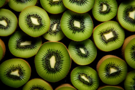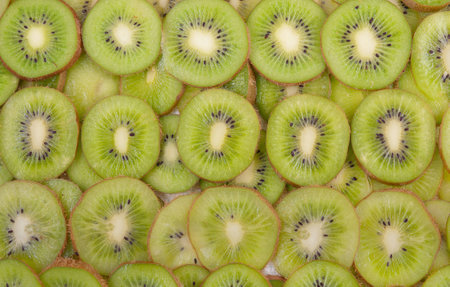 Ripe fresh kiwi fruits sliced as textured background, protein load.