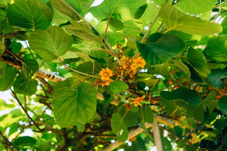 Kiwi tree with fruit and leaves in the sun