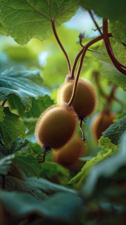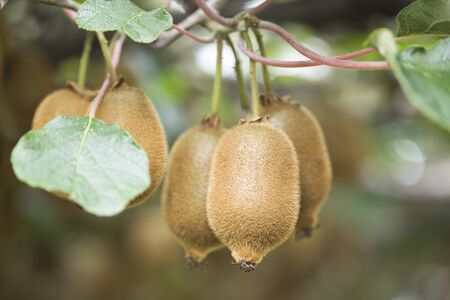 Kiwi fruit hanging on the vine in the garden, stock photo
