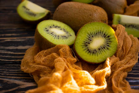 Kiwi fruit on dark background. Green Healthy organic fruit concept.