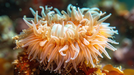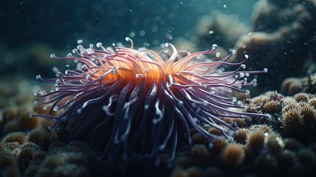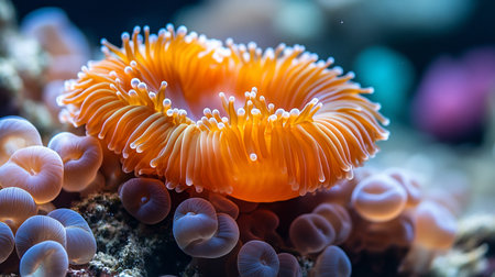 Beauty of an underwater anemone with this vibrant close-up photo. Perfect for adding an exotic touch to your visuals. Generative AI
