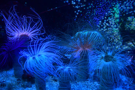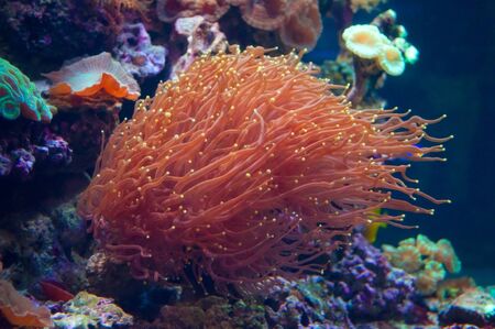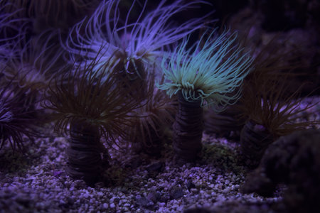 purple blue anemone coral in an aquarium in blijdorp rotterdam the netherlands