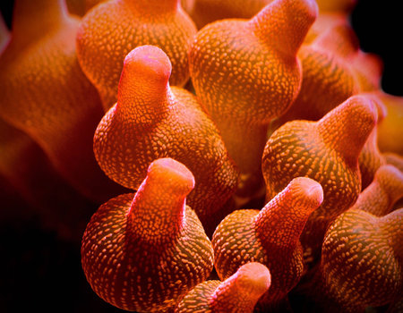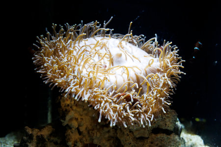closeup of a bulb tentacle sea anemone, popular invertebrate specie from the indo-pacific ocean, marine life background