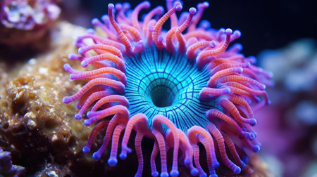 close-up of a colorful sea anemone in coral reef, created with generative ai