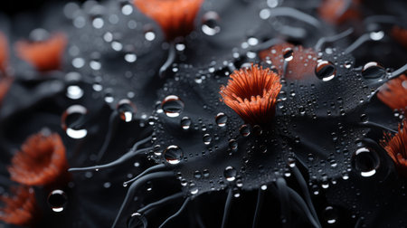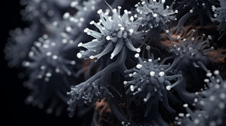 a close-up portrait photograph showcasing the intricate details of unknown helicobacter pylori biological virus alien flowers. the image captures the brittle yet beautiful and elegant nature of these flowers, with vivid contrast and depth of field. shot on a 100mm lens at f/2.0, the photo exhibits rich black tones and crisp details. the natural lighting adds a realistic and impressive touch to this 8k uhd