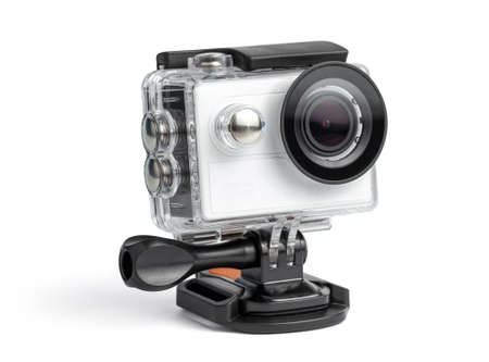 Chekhov, Russia - March 8, 2020: DJI Osmo Action isolated on white background with copyspace. Action camera for photo and video.