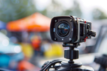 Action camera is recording at a crowded outdoor event, capturing the excitement and energy of the day