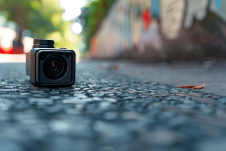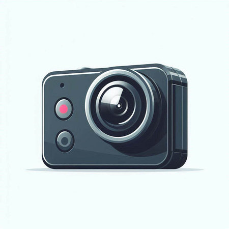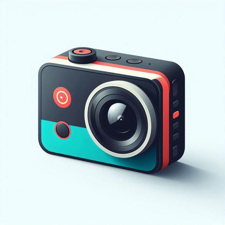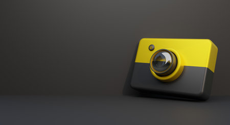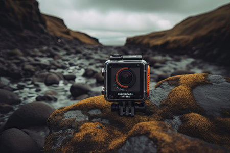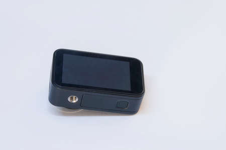 Abstract action camera on black background, unrecognizable brand model, copy-space.