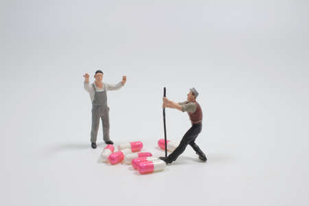 the mini of fun people workers moving capsules pills