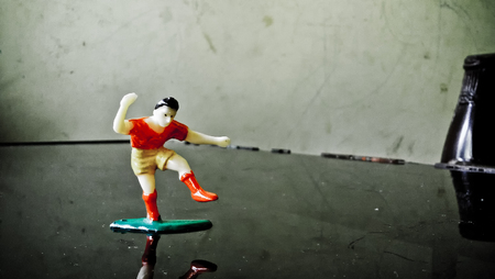 A football player toy on the table