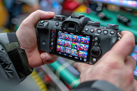 A Close-up of a Person Holding a Camera, Viewing Multiple Images on the Display