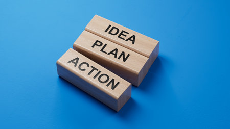 Motivational and inspirational words - Goal, Plan, Action written on wooden blocks.