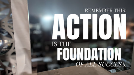 Remember this action is the foundation of all success motivating quote on a dark background encouraging initiative drive progress.