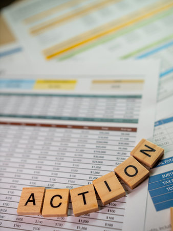 ACTION word on wooden cube block. Concept of action for advancement.