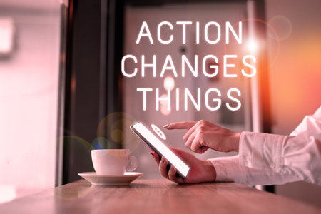 Text sign showing Action Changes Things. Word Written on doing something will reflect other things Reaction