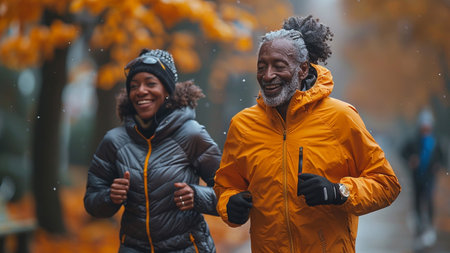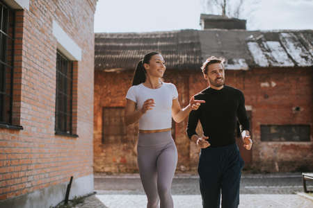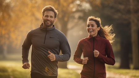 In the early morning glow, a vital couple energizes the streets with their invigorating run, embracing a healthy and active start to the day