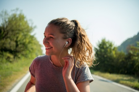 young woman enjoying in a healthy lifestyle while jogging along a country road, exercise and fitness concept
