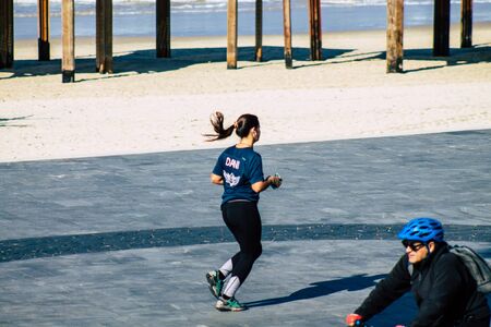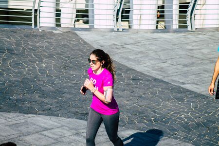 Tel Aviv Israel January 11, 2020 View of unidentified people running on Herbert Samuel Promenade in Tel Aviv in winter