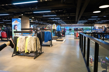 HONG KONG, CHINA - JANUARY 23, 2019: interior shot of Adidas store at New Town Plaza shopping mall in Sha Tin.