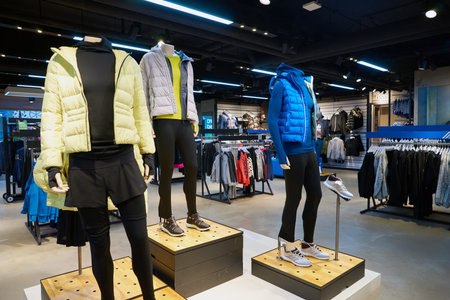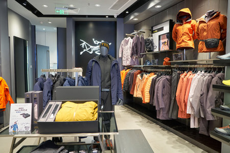 SHENZHEN, CHINA - CIRCA NOVEMBER, 2019: interior shot of Arc'teryx store. Arc'teryx is a Canadian high-end design company specializing in outdoor apparel.