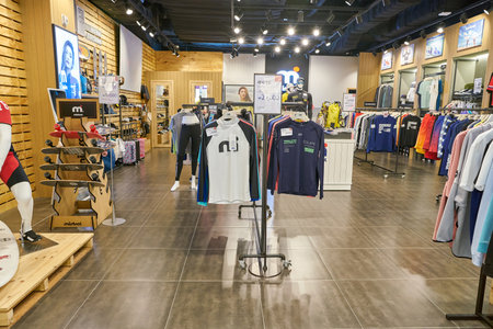 SEOUL, SOUTH KOREA - CIRCA MAY, 2017: inside Descente store in Seoul. Descente Ltd. is a Japanese sports clothing and accessories company