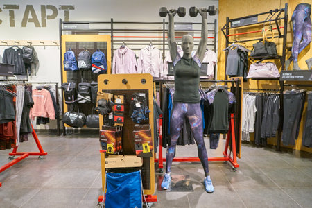MOSCOW, RUSSIA - CIRCA SEPTEMBER, 2018: interior shot of Reebok shop in Moscow