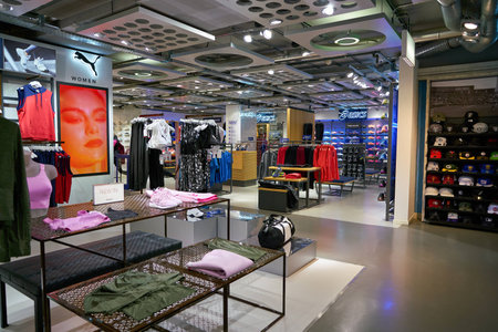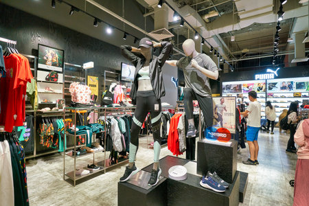 SINGAPORE - APRIL 03, 2019: interior shot of Puma store at a shopping mall in Singapore.