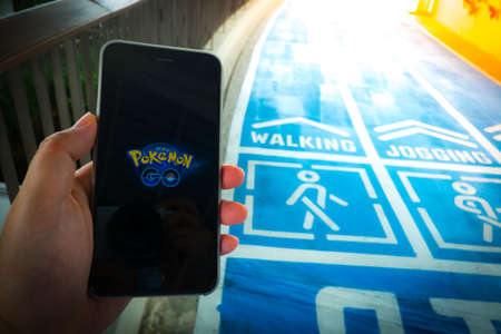 BANGKOK, THAILAND - August 12,2016: Pokemon Go gameplay screenshot on the phone. Pokemon Go is a location-based augmented reality mobile game.