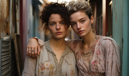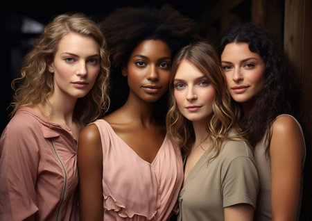 Four beautiful women of diverse ethnicities stand together, celebrating female empowerment and diversity. Ai generated