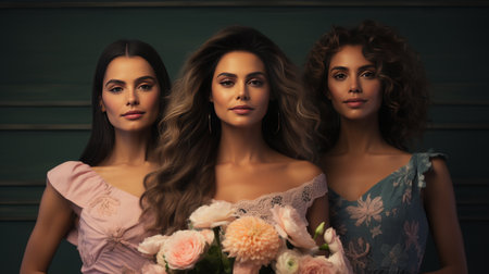 An AI generated illustration of women of different ethnic backgrounds, each dressed in elegant attire that complements their unique beauty