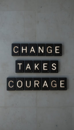 A visually appealing arrangement of letters spelling Act with Courage against a soft beige background. This image embodies motivation and positivity, perfect for inspiring personal growth.