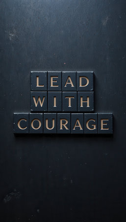 This image features wooden blocks arranged to spell the phrase Lead with Courage, promoting inspiration and motivation for personal growth and leadership ideals.