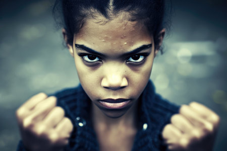 A young determined African American student, proud and confident, fighting and protesting with emotion and a raised fist against racism for rights, justice and equality - Black Lives Matter
