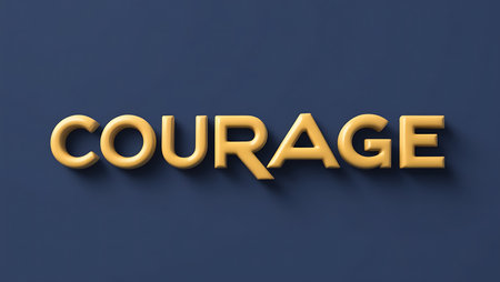 the word courage is displayed in a bold and inspiring typography on a textured background