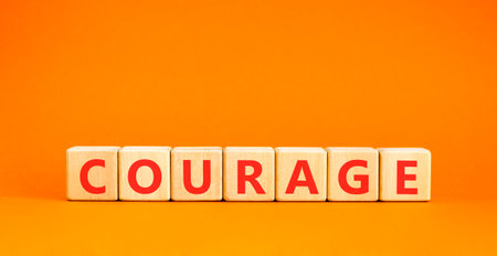 Courage symbol. Concept word Courage on beautiful wooden blocks. Beautiful orange background. Business courage concept. Copy space.