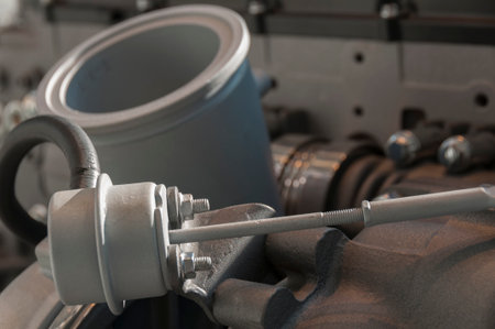 A close-up view of a precision engineering component, showcasing intricate metal textures and detailing, ideal for industrial and manufacturing contexts.