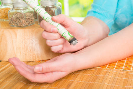 TCM Traditional Chinese Medicine, hand applying moxa stick