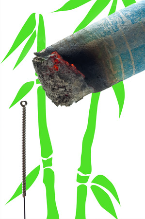 Moxa rolls on Acupuncture needle Concept Traditional Chinese Medical