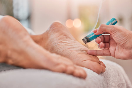 Spa, feet and health therapy for skincare or body wellness treatment. Massage smoke therapy, luxury medical feet healing and skin beauty for healthy lifestyle, relax and natural calm energy at clinic