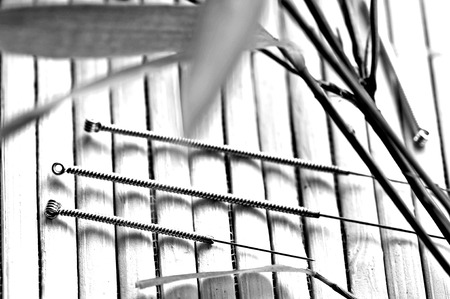 several needle for acupuncture are adjacent. traditional chinese medicine