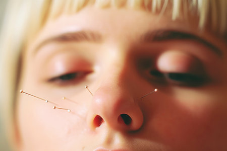 Acupuncture treatment needles. Traditional female spa. Generate Ai