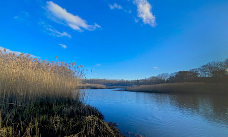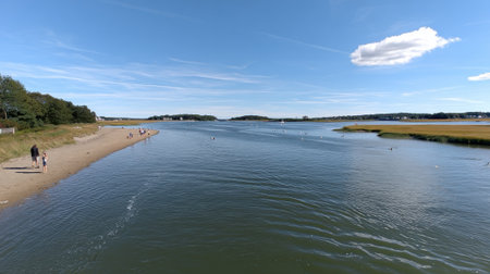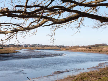 stream river landscape view blue water coast essex estuary; essex; england; uk