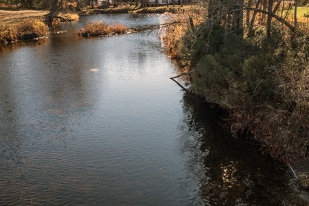 A beautiful view of an autumn landscape with a river in Pittsburgh forest