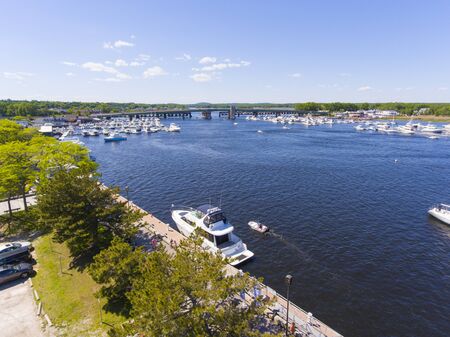 Newburyport waterfront and Merrimack River aerial view, Newburyport, Massachusetts, MA, USA.