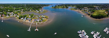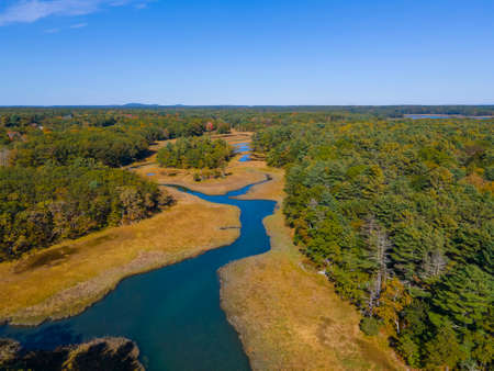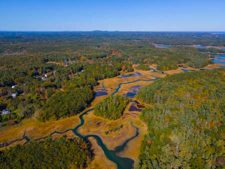 Chauncey Creek aerial view in fall between Gerrish Island and Kittery Point in town of Kittery, Maine ME, USA.